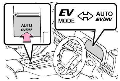 車両がEV走行可能な状態のとき、スイッチを操作することでEVモードとAUTO EV/HV モードを切りかえることができます。(→EVモード・AUTO EV/HV モード・HVモードを切りかえるには)