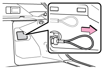 通常の操作で普通充電コネクターをアンロックできないときは、コネクターロック緊急解除ケーブルを操作して、普通充電コネクターをアンロックすることができます。