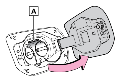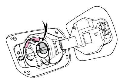 4. 普通充電インレットキャップをはずし、急速充電インレットのキャップのフックに掛ける