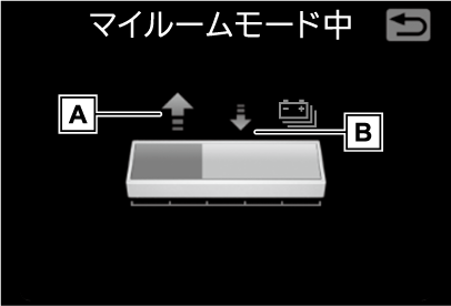 急速充電するとき:→急速充電・V2H 充電/ V2H 給電のしかたV2H 充電/ V2H 給電時は、マイルームモードを使用できません。 - 充電の実施中にパワースイッチをONにするマルチインフォメーションディスプレイにマイルームモードの起動を確認する画面が表示されます。