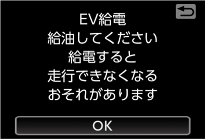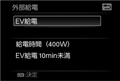 外部給電器に車両に異常があるようなメッセージ(例えば、「車両に異常が見つかりました」、「車両故障発生」など)が表示されても、車両の異常ではなく、外部給電器と車両間の通信異常である可能性があります。