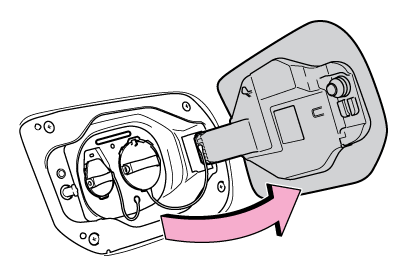 急速充電インレットから外部給電コネクターを取りはずしたあとは、必ず急速充電インレットの急速充電インレットキャップをはめてから、充電リッドを閉めてください。