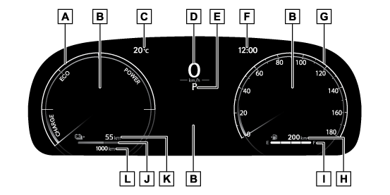 - EV 走行可能距離/EVエネルギー残量表示カスタマイズメニューから項目を切りかえることができます。(→設定について)EV走行可能距離:現在の駆動用電池残量で走行可能なおよその距離を表示します。EVエネルギー残量表示:駆動用電池の残量を示します。(→駆動用電池残量計について)