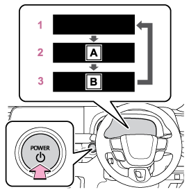 パワースイッチがOFF のとき、電子キーを携帯したままブレーキペダルを踏むと、パワースイッチ文字照明が点滅します。