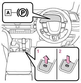 オートモードのときは、シフトポジションの操作に応じてパーキングブレーキが自動で作動します。また、オートモードのときでも手動でパーキングブレーキをかける・解除することができます。