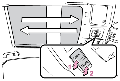 • 挟み込み防止機能は、電動サンシェードが完全に閉まる直前に異物を挟むと作動しない場合があります。また、挟み込み防止機能は、スイッチを押し続けた状態では作動しません。指などを挟まないように注意してください。