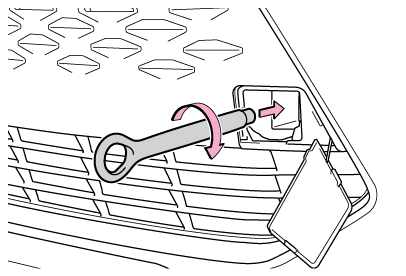 3. けん引フックを穴に挿し込んでまわし、軽く締める