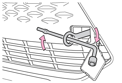 1. ラゲージルーム内のけん引フックを取り出す(→タイヤパンク応急修理キットと工具の位置