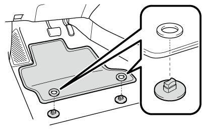 フロアマットがすべての固定フック(クリップ)で正しい位置にしっかりと固定されていることを定期的に確認し、特に洗車後は必ず確認を行う