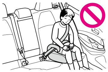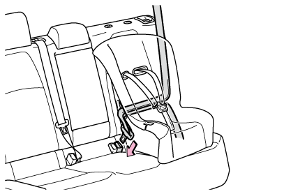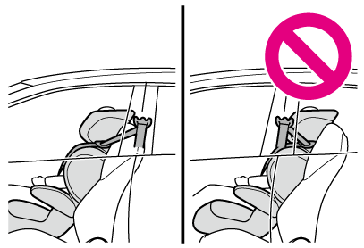 チャイルドシートの隣の席を使用するときは、肩部ベルトが確実に肩を通り、腰部ベルトが腰骨のできるだけ低い位置に密着することを確認してください。チャイルドシートの隣の席に座ったときに、チャイルドシートの種類によっては、乗員の体またはシートベルトがチャイルドシートと干渉するためシートベルトが正しく着用できず、十分な効果を発揮できない場合があります。その場合は、他の席を使用してください。