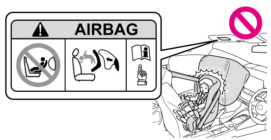 うしろ向きに取り付けていると、事故などで助手席SRSエアバッグがふくらんだとき、重大な傷害におよぶか、最悪の場合死亡につながるおそれがあります。