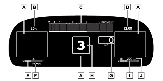 - タコメーター毎分のエンジン回転数を示します。計器類の表示を変更できます。(→設定を変更するには)