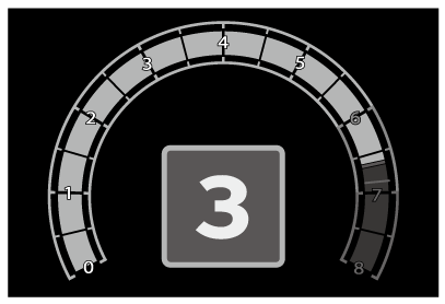 設定したエンジン回転数またはレッドゾーンに到達すると、タコメーターを強調表示します。