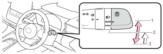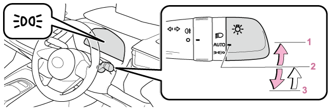 2 | LEDデイライト(→LEDデイライト)が点灯 | ヘッドランプ・スモールランプが点灯 |