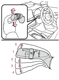 レバーを操作すると、ワイパーまたはウォッシャーが作動します。