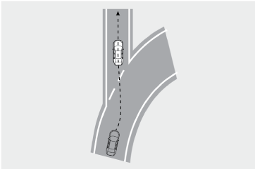 渋滞のときなど車線が見えにくい、または見えない場合、先行車/周辺車の軌跡を利用して支援を行います。