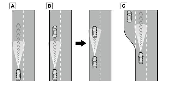 レーダークルーズコントロールは、先行車への追突を防止する機能はありません。このため、危険性があれば運転者自らが安全を確保する必要があります。