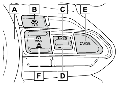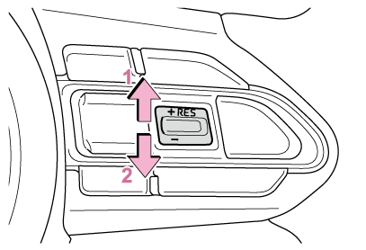 車速がシステムの上限を超えているときに設定すると、設定速度の上限に設定されます。