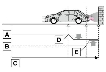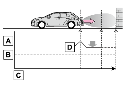 PKSB(パーキングサポートブレーキ)は、完全に車両を停止させるシステムではありません。また、車両を停止させることができたとしても、ブレーキ制御は約2秒で解除されるため、すぐにブレーキペダルを踏んでください。