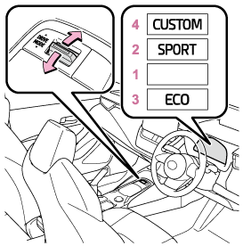 ドライブモードセレクトスイッチを前後に操作し、マルチインフォメーションディスプレイ表示からドライブモードを選択します。