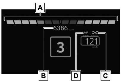 サーキットモードが設定されたとき、メーターの表示や一部の計器類の配置が切りかわります。