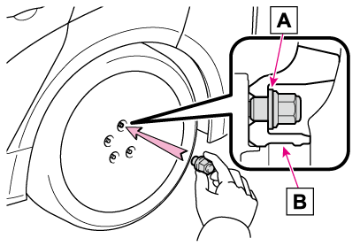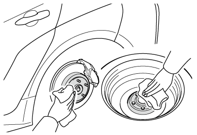 ナットを締めるときに必要以上に締め付けられ、ボルトが破損したり、ディスクホイールが損傷するおそれがあります。またナットがゆるみホイールが落下するおそれがあります。オイルやグリースがねじ部に付いている場合はふき取ってください。
