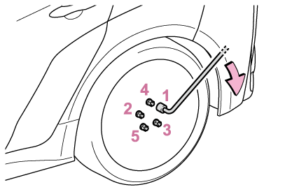 ホイールの交換後は、すぐに103N・m(1050kgf・cm)の力でナットを締める