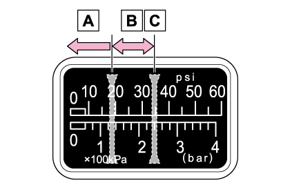 空気圧を確認してください。130kPa(1.3kg/cm2)未満の場合は、タイヤが大きなダメージを受けている可能性があります。