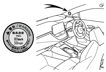 速度制限シールは指定位置以外に貼らないでください。ハンドルのパッド部分などのSRSエアバッグ展開部に貼ると、SRSエアバッグが正常に作動しなくなるおそれがあります。