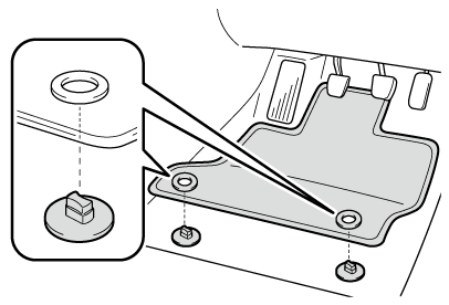 エンジン停止およびシフトレバーがP(オートマチック車)またはN(マニュアル車)の状態で、各ペダルを奥まで踏み込み、フロアマットと干渉しないことを確認する