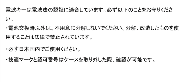 電子キー表面にシールなどを貼らない