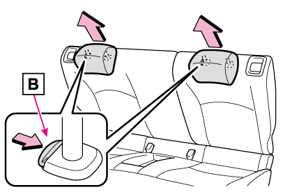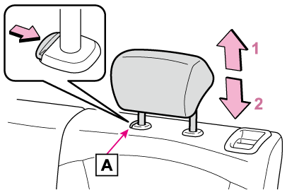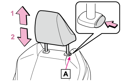 を押しながら操作します。必ずヘッドレストの中心が両耳のいちばん上のあたりになるよう調整してください。