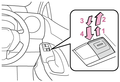 車を停止し、全てのドアを閉め、エンジンスイッチをONの状態で、挟み込み防止機能や、巻き込み防止機能が作動したあと約4秒以内に、パワーウインドウスイッチを自動全閉の位置で引き続ける。または、自動全開の位置で押し続けることでドアガラスを開閉することができます。