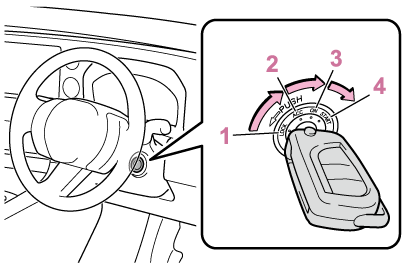 ハンドルを左右に動かしながら、エンジンスイッチをまわしてください。