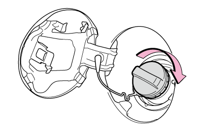 キャップはツマミ部分を持ち、ゆっくりと開けてください。また、キャップをゆるめたときに、“シュー”という音がする場合は、その音が止まるまでキャップを保持してください。