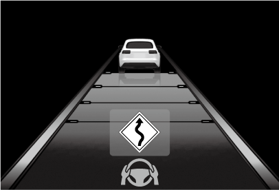 カーブを認識すると車速の抑制を開始します。カーブが終了すると車速の抑制が終了します。