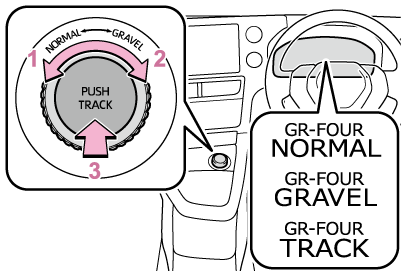 GRAVEL/TRACKモードを選択して走行後、エンジンスイッチをOFFにし、再度エンジンスイッチをONにした場合は、自動でGR-FOUR NORMALモードにもどります。