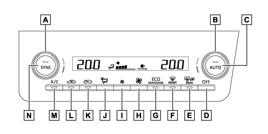 ドライブモードセレクトスイッチのエコドライブモードを選択すると、エコ空調モードがONになります。(→ドライブモードセレクトスイッチ)