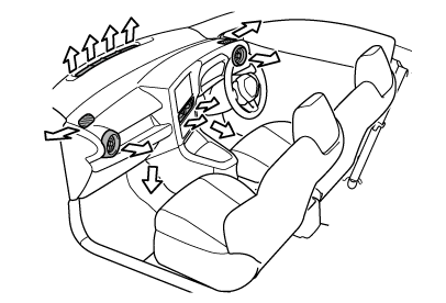 運転席窓側の吹き出し口の近くでスプレーを使用したり、吹き出し口にものをはめ込んだり貼ったりしないでください。正常に働かなくなるおそれがあります。