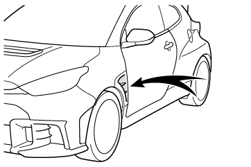 洗車時にフロントフェンダーエアアウトレットにバケツなどで一度に大量の水をかけたり、高圧洗浄機で直接水を当てたりしないでください。
