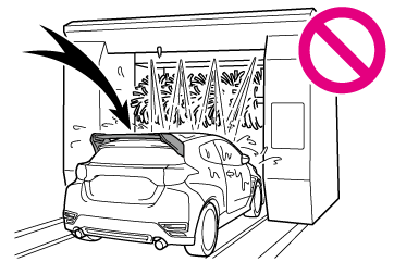 に傷が付き塗装を損なうおそれがあるため、自動洗車機は使用しないでください。