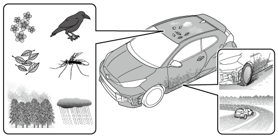 次のような汚れは落としにくくなるおそれがあるため、付着した場合は速やかに洗車することをおすすめします。
