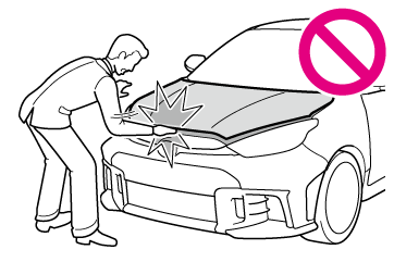 ボンネットを閉めるときは、体重をかけるなどして強く押さないでください。ボンネットがへこむおそれがあります。