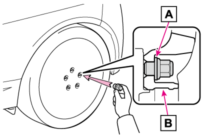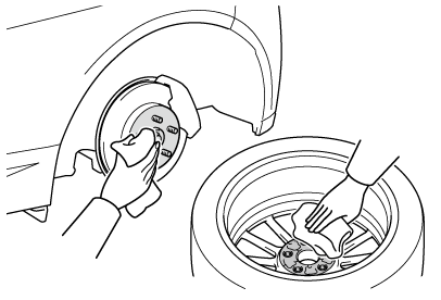 ナットを締めるときに必要以上に締め付けられ、ボルトが破損したり、ディスクホイールが損傷するおそれがあります。ナットを取り付けるときに、オイルやグリースがねじ部に付いている場合はふき取ってください。