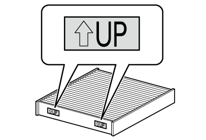 UP”マークの矢印が上を向くように取り付けます。