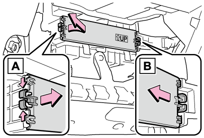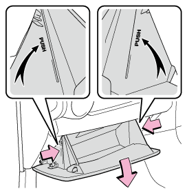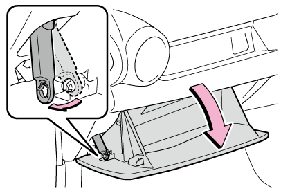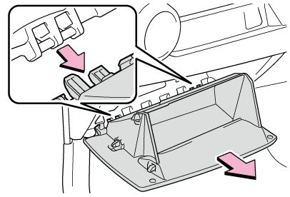 - グローブボックス側面を内側に押して上部のツメを片側ずつはずす