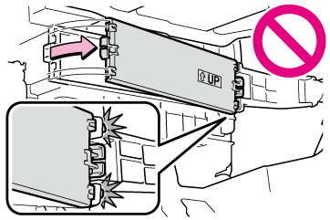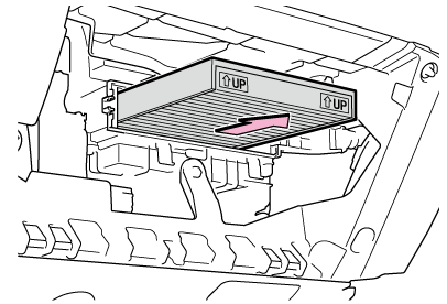 フィルターカバーのロックをはずすときに、フィルターカバーを矢印の方向に動かす際は、ツメに無理な力がかからないように注意してください。ツメが破損するおそれがあります。
