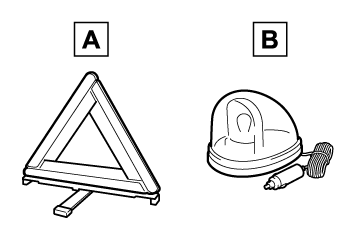 2. 車両の50m以上後方()に発炎筒(→発炎筒)と停止表示板を置くか、停止表示灯を使用する