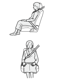 ベルトを正しく着用していないと、衝突したときなどに、母体だけでなく胎児までが重大な傷害を受けたり、最悪の場合死亡につながるおそれがあります。