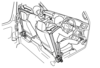 前方から強い衝撃を受けたとき、フロント席のシートベルトを引き込むことで適切な乗員拘束効果を確保します。